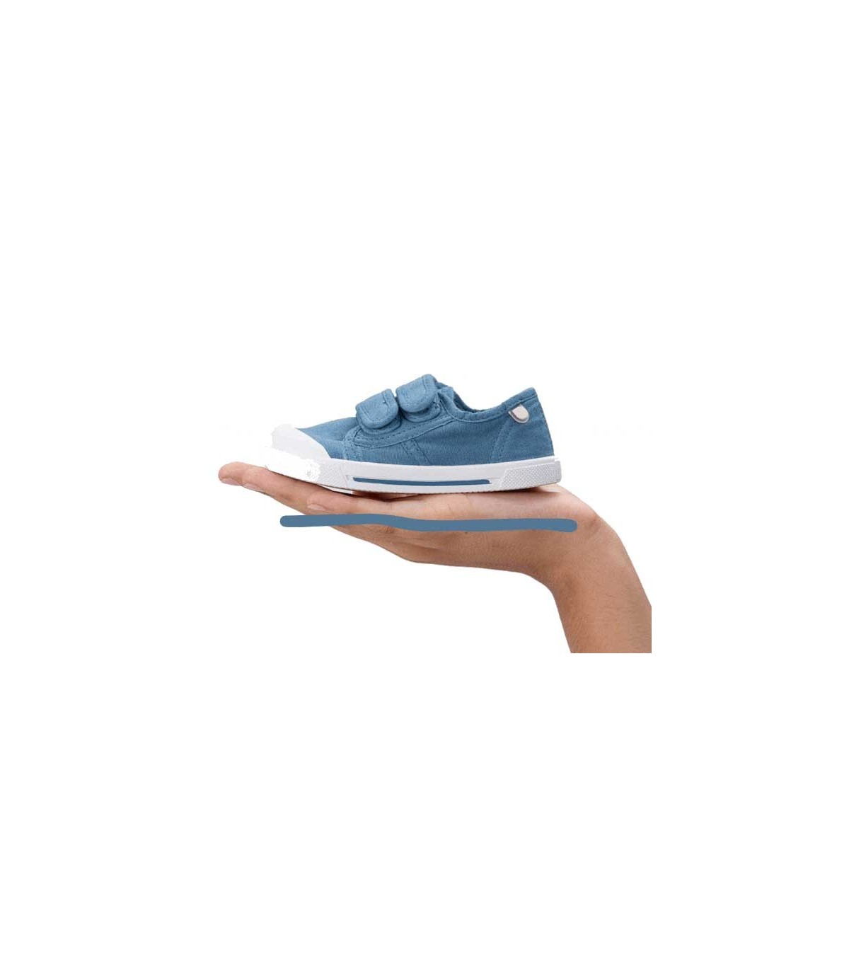 Zapatillas de lona 100 % algodón, color jeans, concepto barefoot wide, con la puntera más ancha, drop cero y suela blandita y flexible, plantilla extraíble y ajuste con tiras adherentes. Lavar en agua fría sin la plantilla.