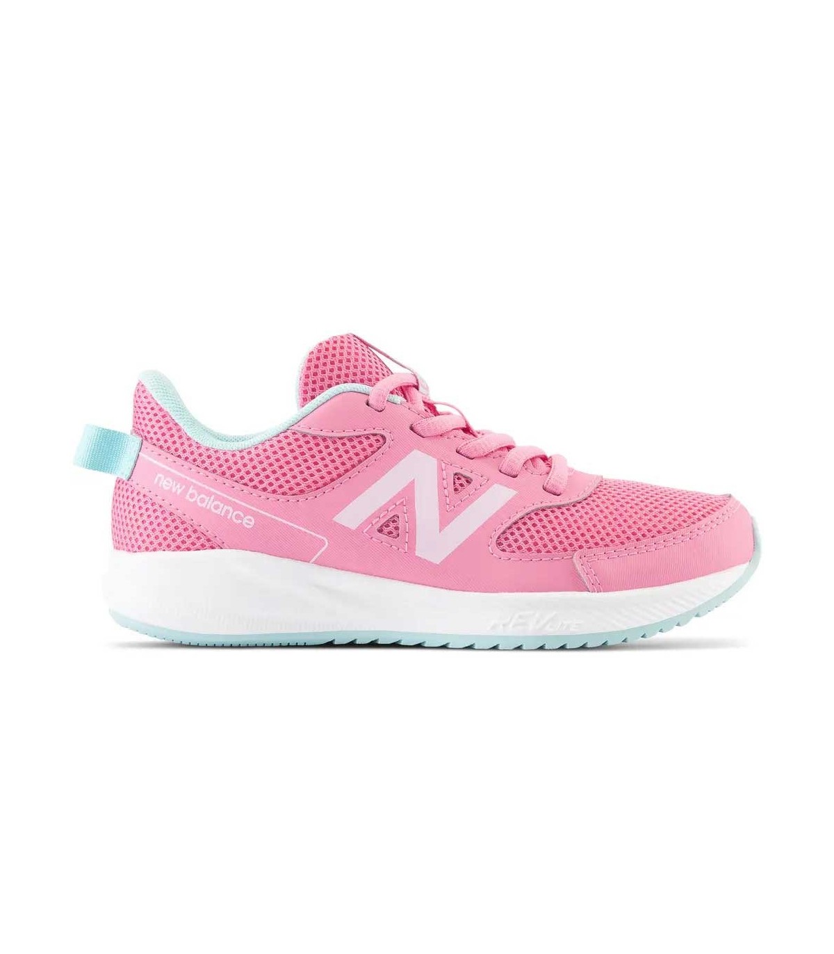 Zapatilla Deportiva running niña New Balance color rosa con cordones.