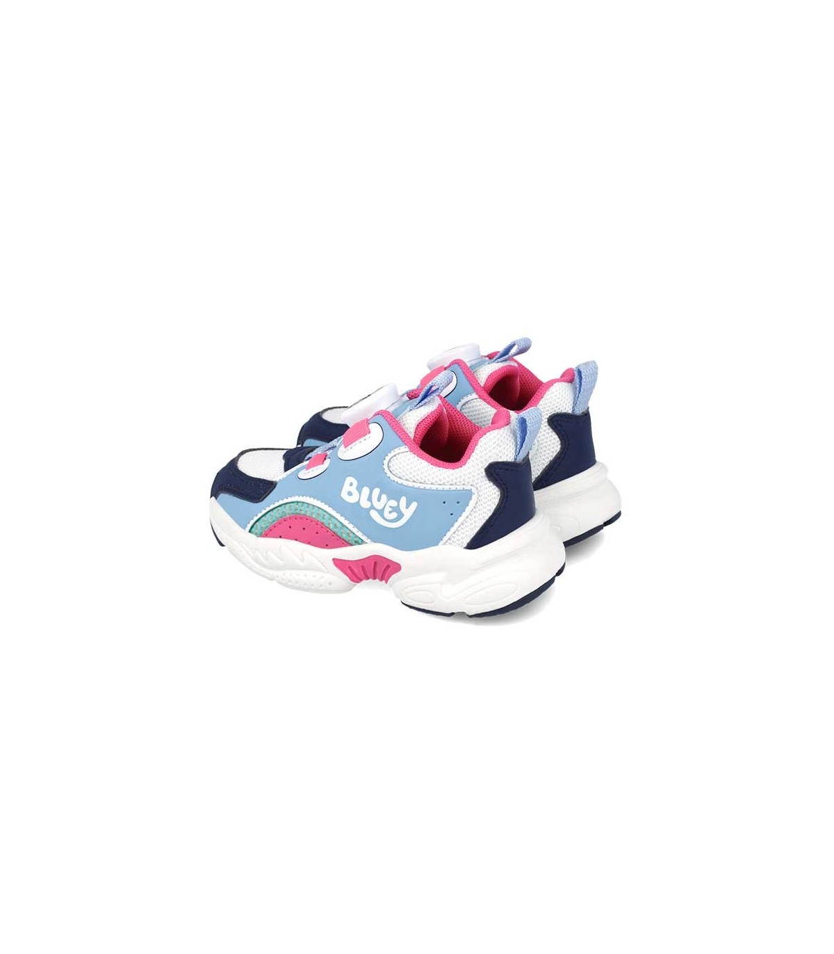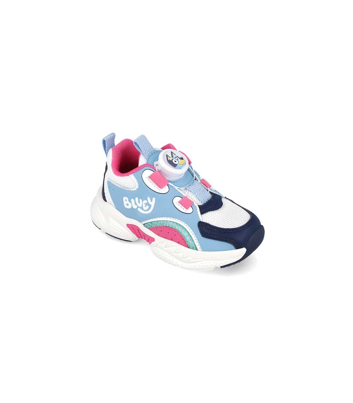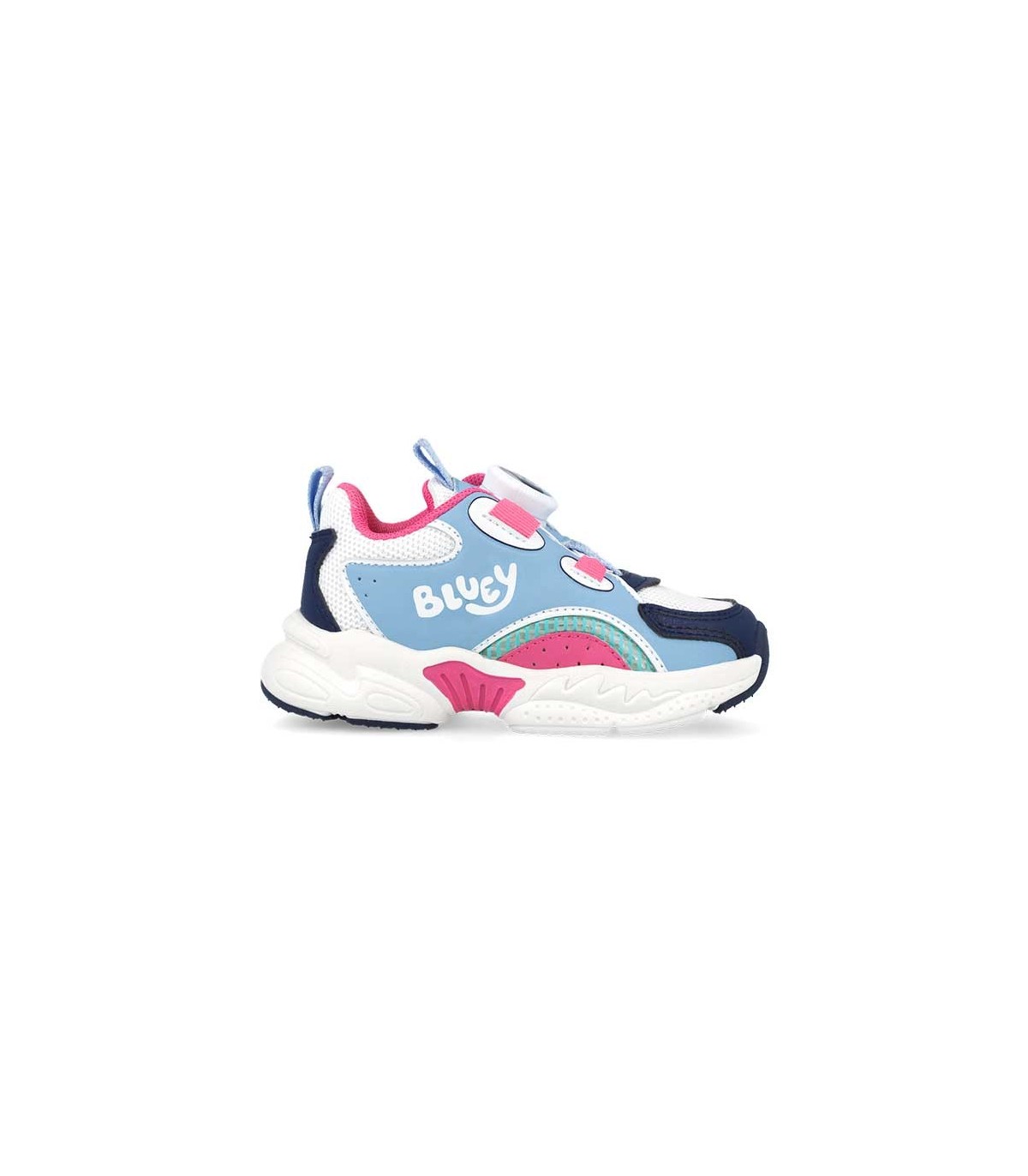 Zapatilla deportiva Garvalín color celeste, blanco y fucsia. Calzado ligero, blandito y flexible con la puntera reforzada. Plantilla extraíble y transpirable para prevenir la aparición de hongos y bacterias. Con refuerzo en el talón. Sistema de cierre rotativo.