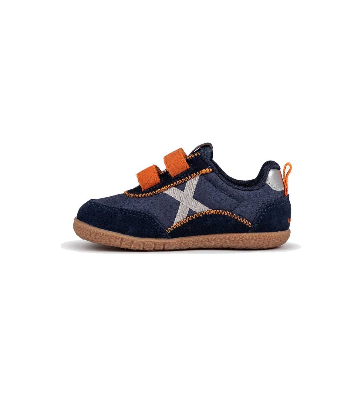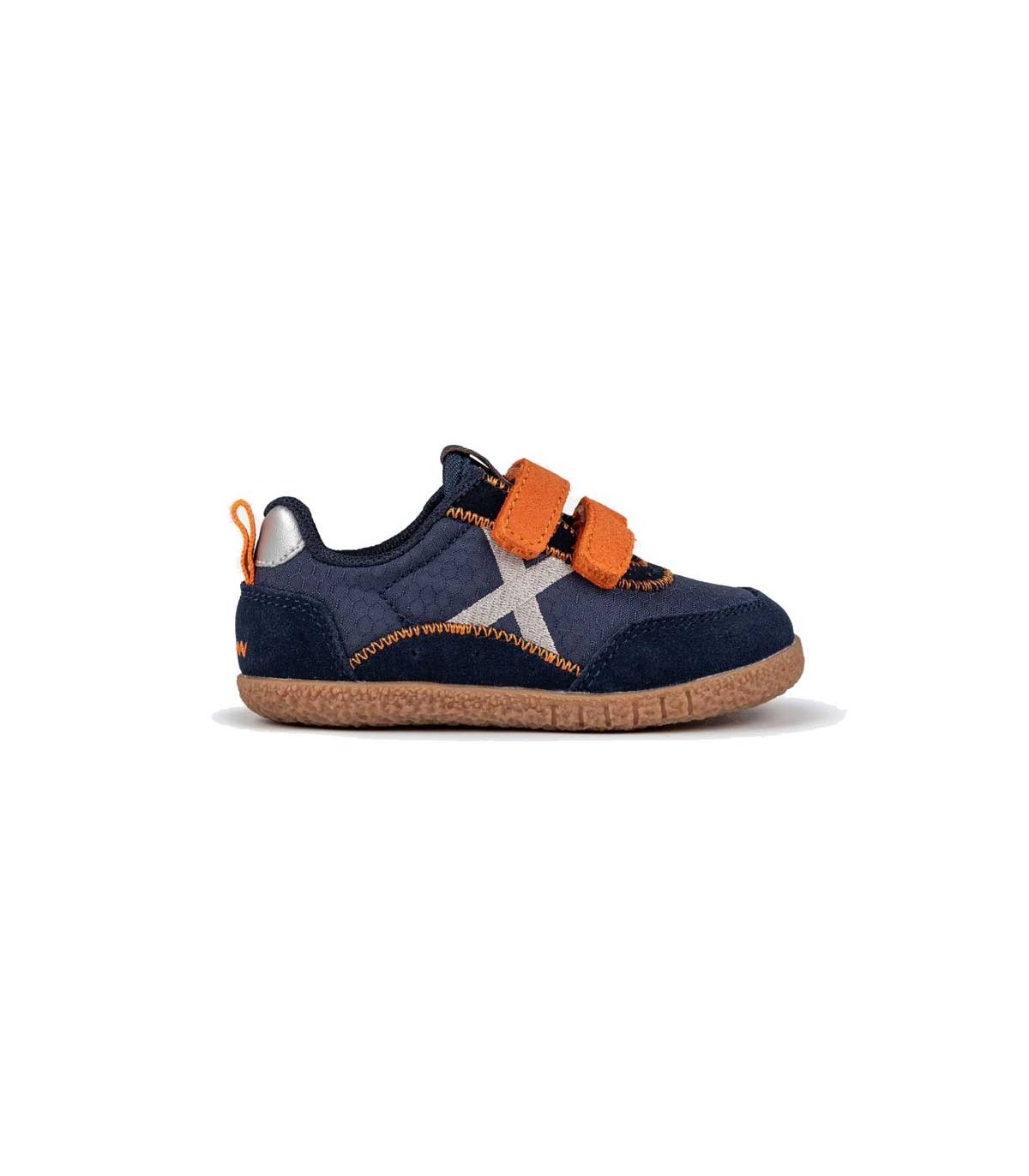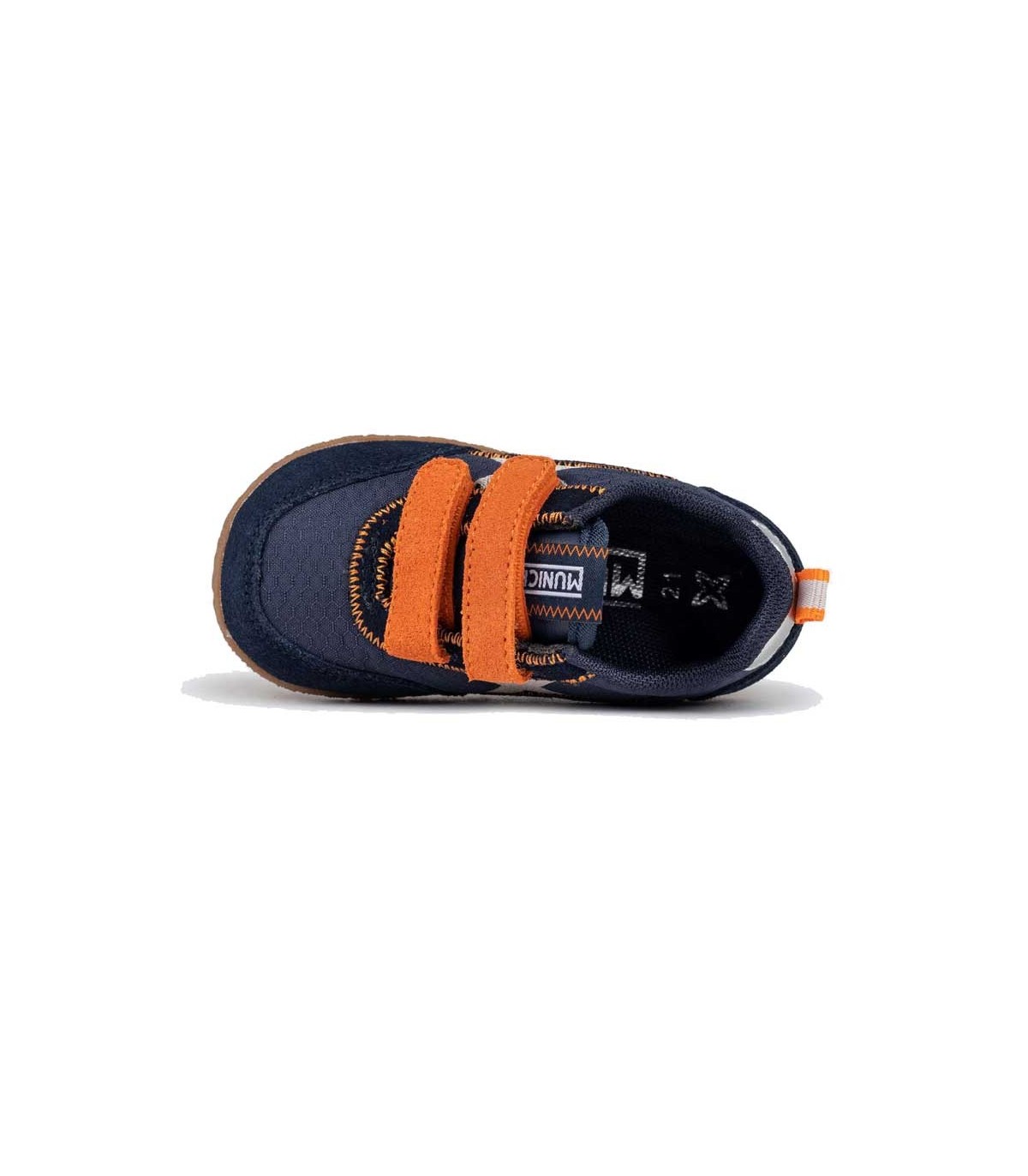 Zapatillas deportivas Munich Baby Koda, para los más pequeños, con suela flexible. Cierre con velcro. Color azul/naranja.