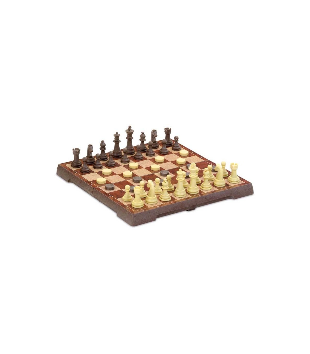 Ajedrez y damas magnético en caja plegable. Dimensiones del tablero 24x24 cm.