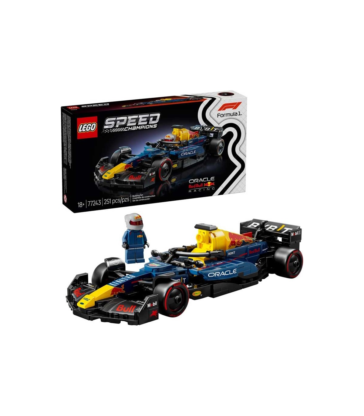 Set de construcción Lego Speed Champions, coche de carreras Oracle Red Bull Racing RB20 F1. Contiene 251 piezas, incluye 1 Minifigura.